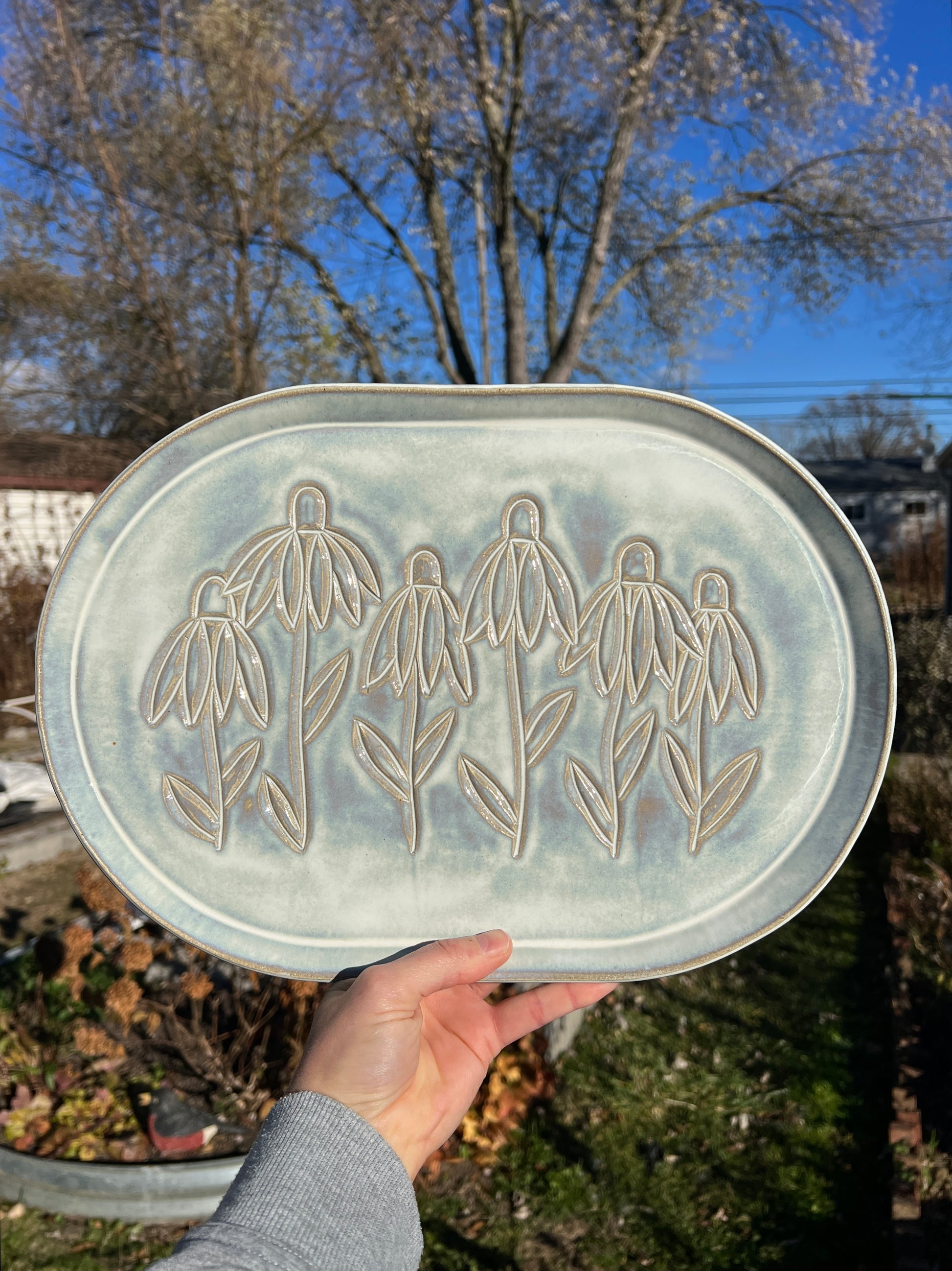 Hand-carved coneflowers inspired by the native plant Ratibida pinnata pop on this serving set of two perfect for charcuterie or your favorite party treats.