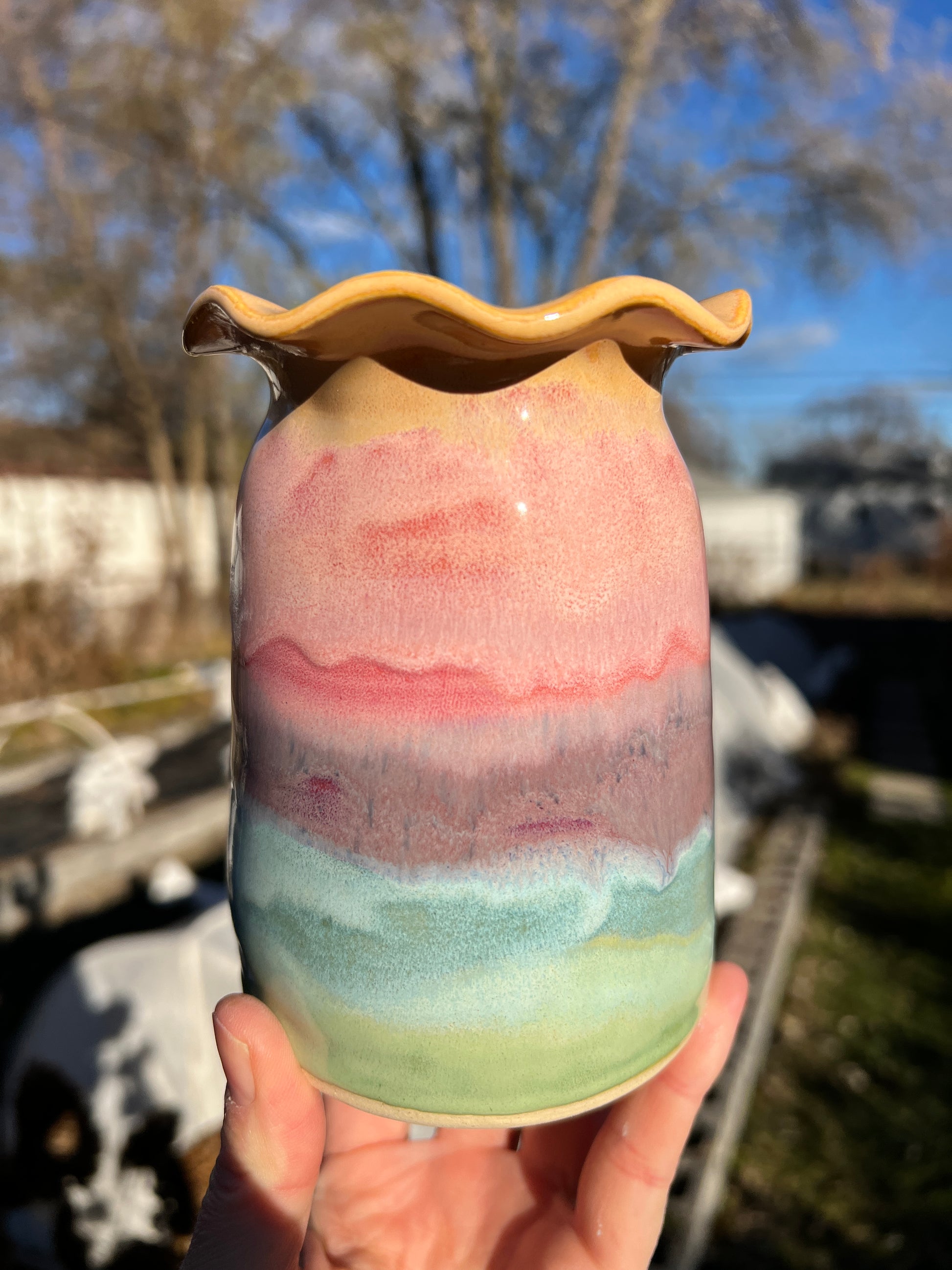 Crafted from a light-colored stoneware clay. Dishwasher safe, but handwashing is recommended to maintain glossy glaze finish.